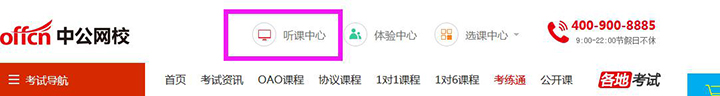 ① 打開中公網校首頁www.3jmao.net ,點擊中間顯示的"聽課中心",如圖: